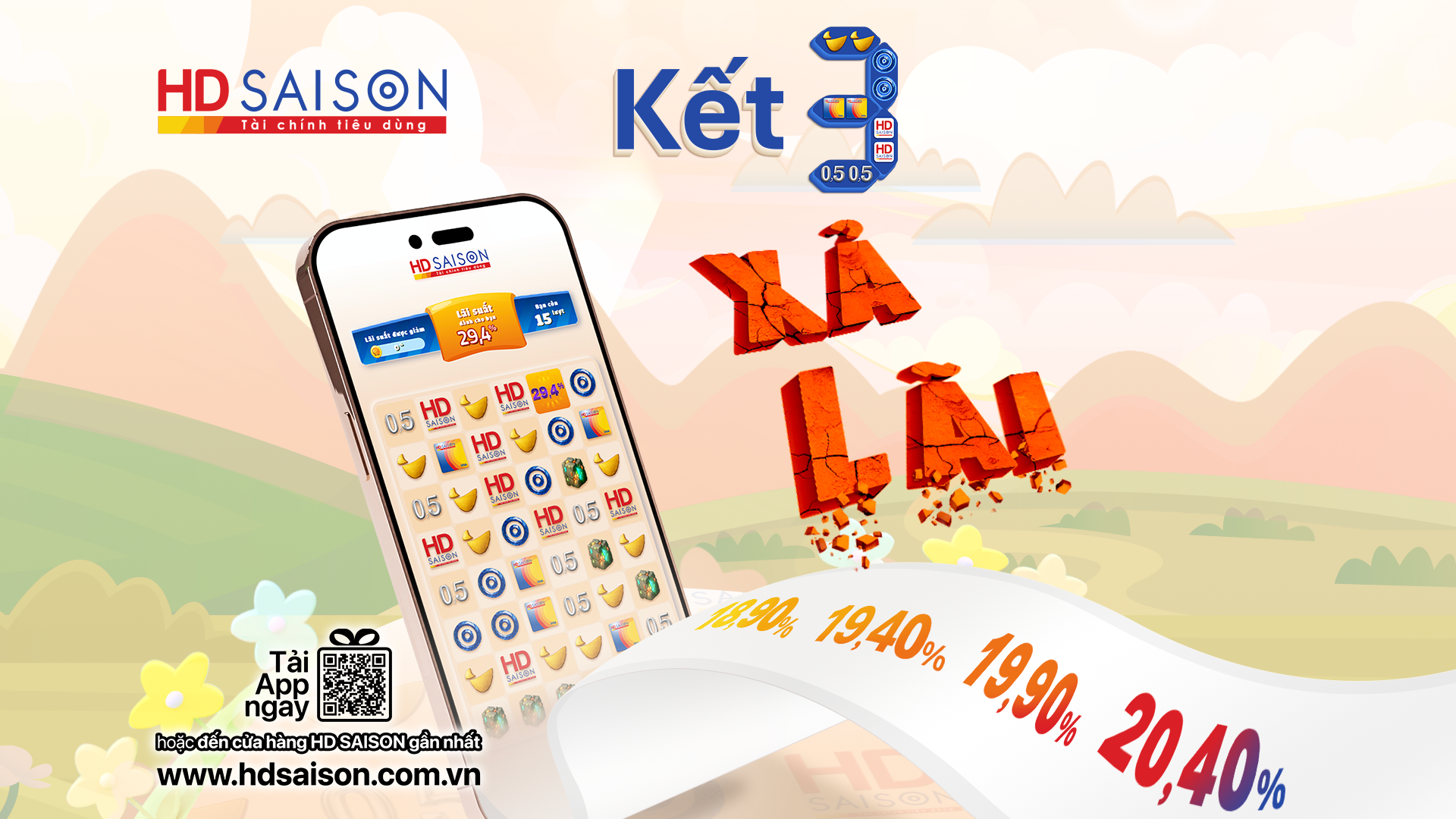 Đặc biệt, cơ hội vay hấp dẫn lên đến 19 triệu với mức lãi suất ưu đãi chỉ 18,9%/năm – thanh toán linh hoạt chỉ từ 1.095k/tháng, đang chờ bạn tham gia tại thử thách "Kết 3, xả lãi" trên App HD SAISON.