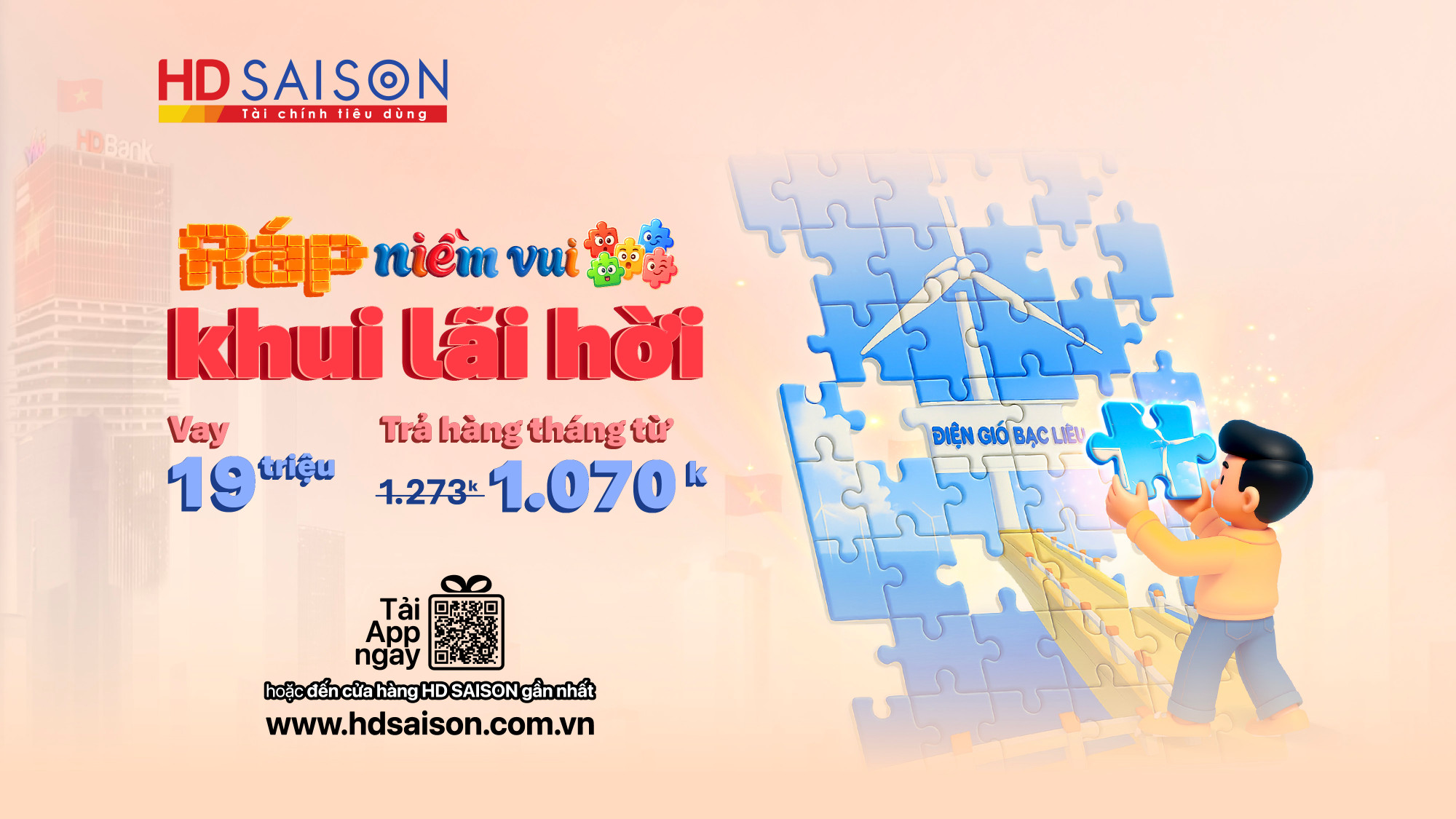 Đặc biệt, ưu đãi lãi suất chỉ 17,4%/năm đang chờ bạn tại thử thách “Ráp niềm vui, khui lãi hời” trên app HD SAISON. Tham gia xếp hình với những mảnh ghép rực rỡ sẽ có cơ hội mở khóa khoản vay 19 triệu đồng, với mức trả góp nhẹ nhàng chỉ từ 1.070k/tháng.
