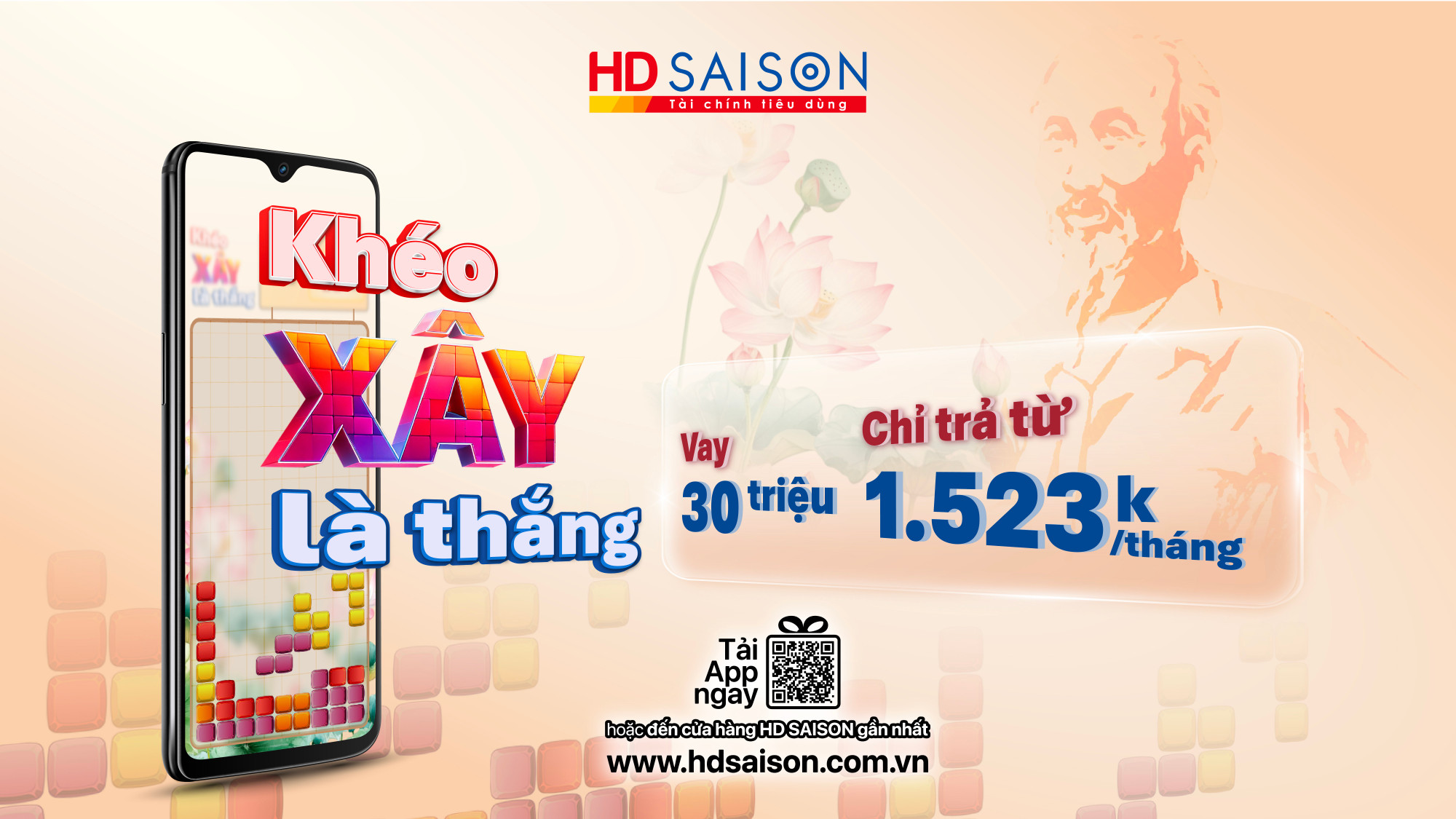 Đặc biệt, với thử thách "Khéo xây là thắng" đang có mặt trên App HD SAISON, mỗi bước xây khéo sẽ giúp giảm thêm 1,16% lãi suất. Càng khéo xây, càng tiết kiệm cùng cơ hội vay cực tốt lên đến 30 triệu, lãi suất chỉ 11%/năm, trả dần mỗi tháng chỉ từ 1.523k/tháng.