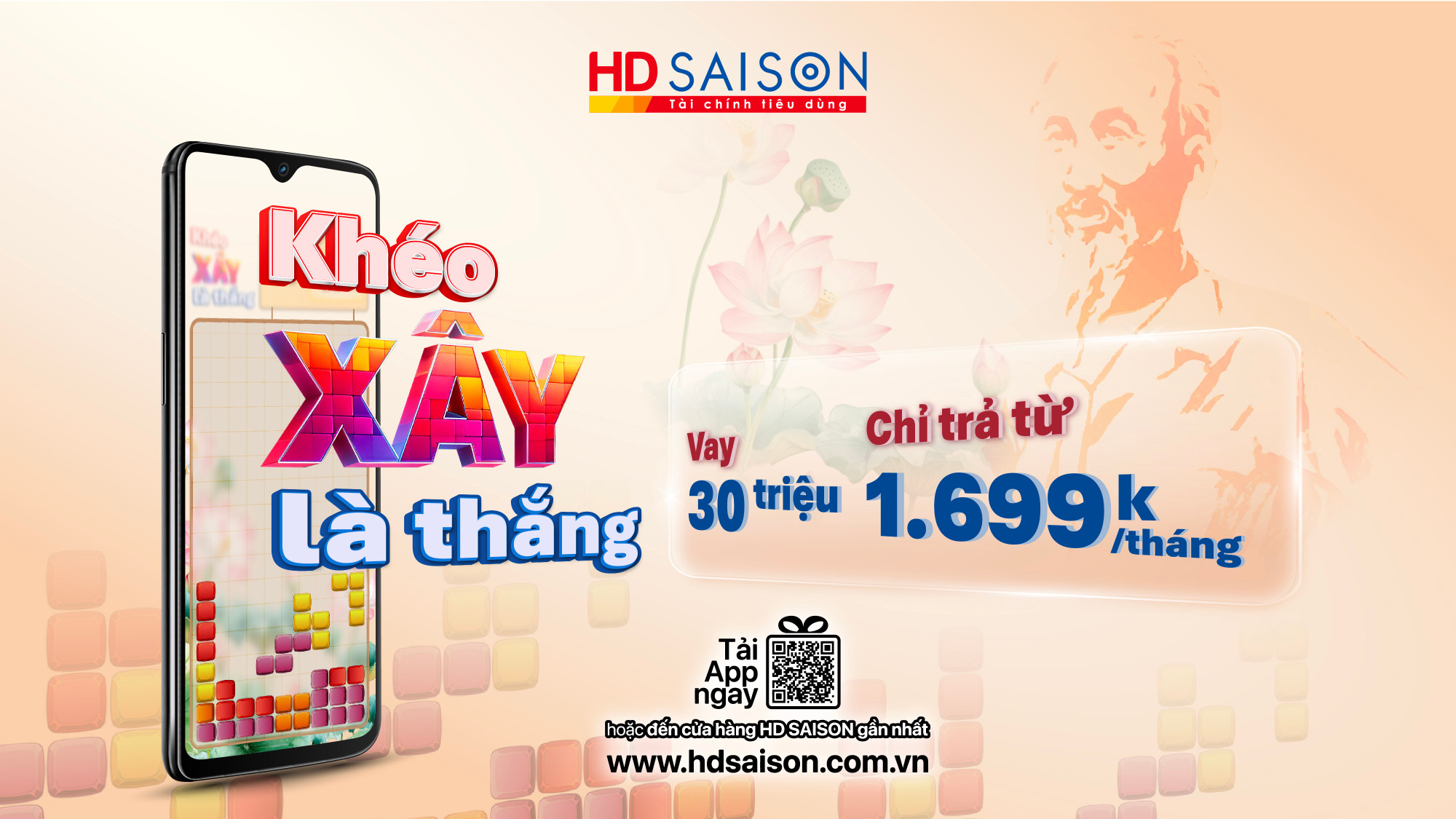 Đặc biệt, với thử thách "Khéo xây là thắng" đang có mặt trên App HD SAISON, mỗi bước xây khéo sẽ giúp giảm thêm lãi suất. Càng khéo xây, càng tiết kiệm cùng cơ hội vay cực tốt lên đến 30 triệu, lãi suất chỉ 17,8%/năm, trả dần mỗi tháng chỉ từ 1.699k/tháng.