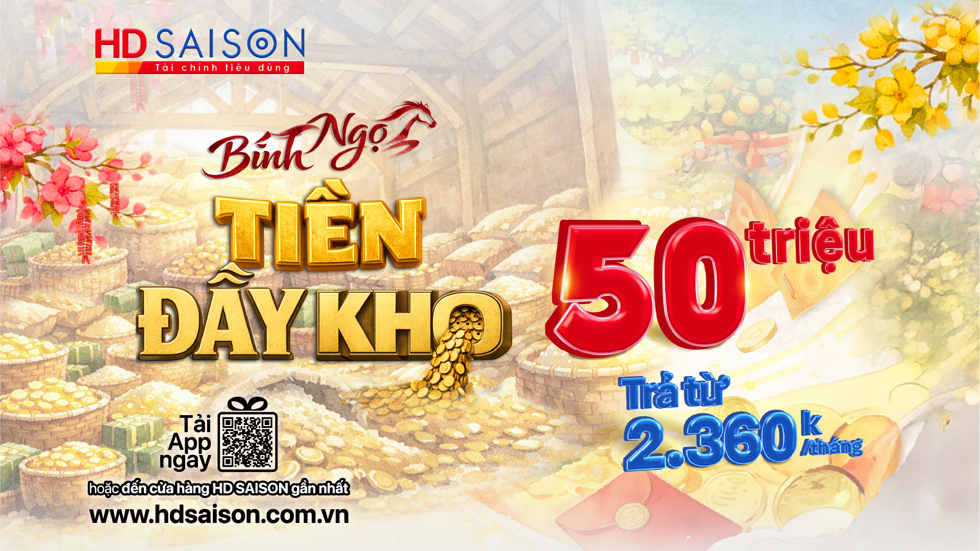 Từ nhu cầu thực tế đó, HD SAISON triển khai chương trình Bính Ngọ - Tiền đầy kho, mang đến giải pháp tài chính linh hoạt, giúp Quý khách hàng chủ động nguồn vốn cho các kế hoạch cá nhân và gia đình.