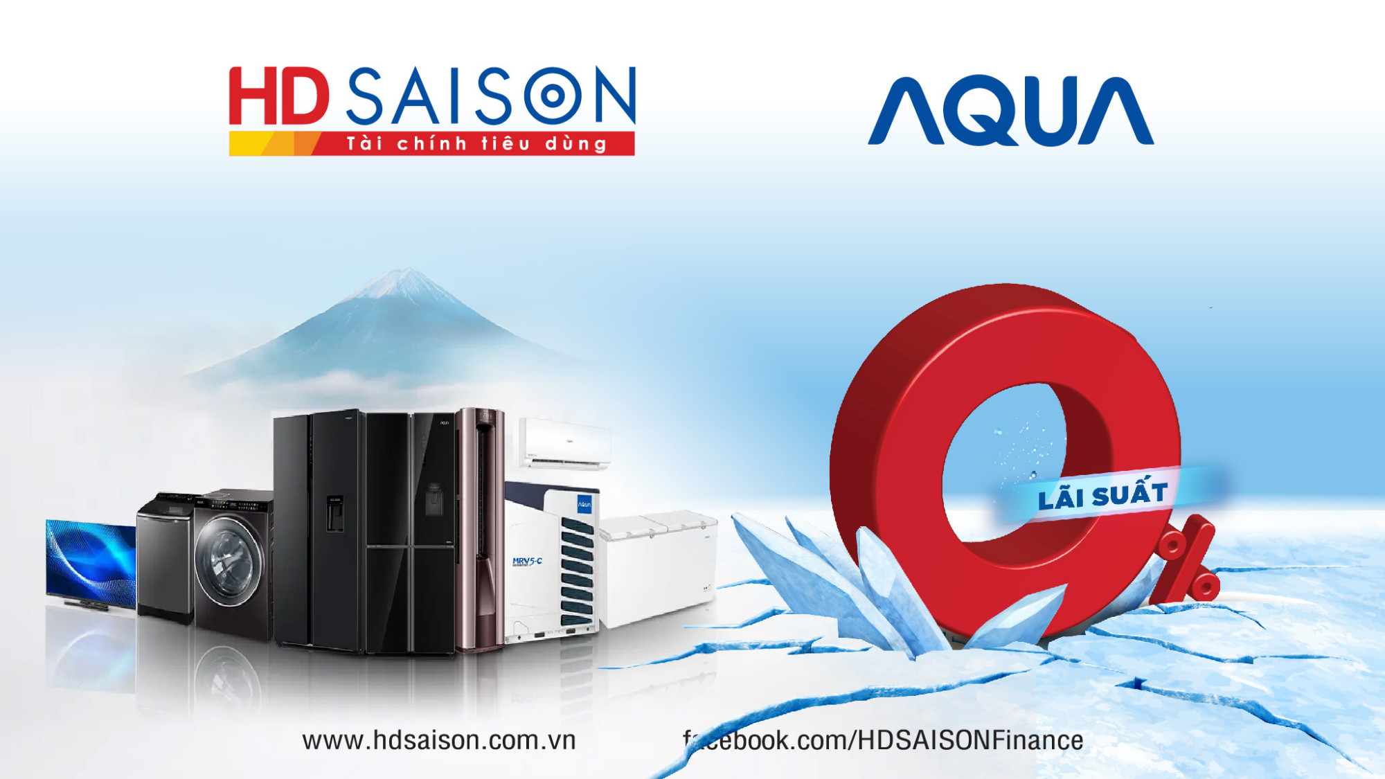 Với cùng một mong muốn thấu hiểu người Việt sâu sắc, Aqua và HD SAISON đã cùng đồng hành trong các năm qua để giúp nhiều khách hàng nâng cao chất lượng cuộc sống. Cụ thể, Aqua đã cung cấp cho thị trường Việt Nam sản phẩm chất lượng cao còn HD SAISON đem đến cho Quý Khách hàng dịch vụ hỗ trợ tài chính tiêu dùng đa dạng, thiết thực. Sự kết hợp hoàn hảo được nối tiếp bằng gói vay siêu ưu đãi như sau: