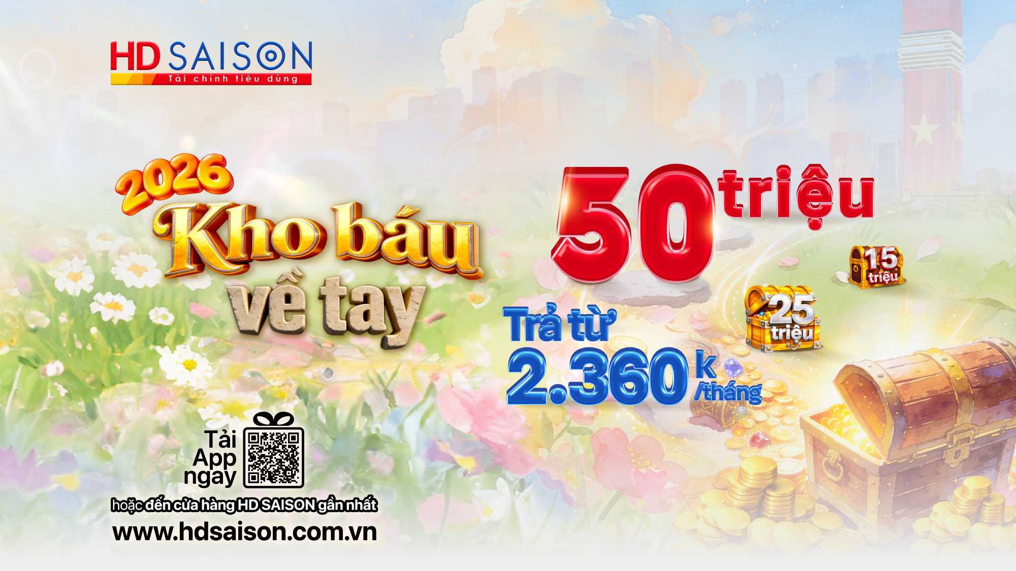 Năm mới gõ cửa, mang theo những hy vọng, kế hoạch và cả những “kho báu” đang chờ được khai mở. HD SAISON hiểu rằng, một khởi đầu thuận lợi sẽ là nền tảng để mọi dự định trong năm diễn ra suôn sẻ. Chương trình “2026 – Kho báu về tay” được ra mắt như một lời chúc năm mới và là sự đồng hành cùng Quý khách hàng ngay từ những ngày đầu năm.