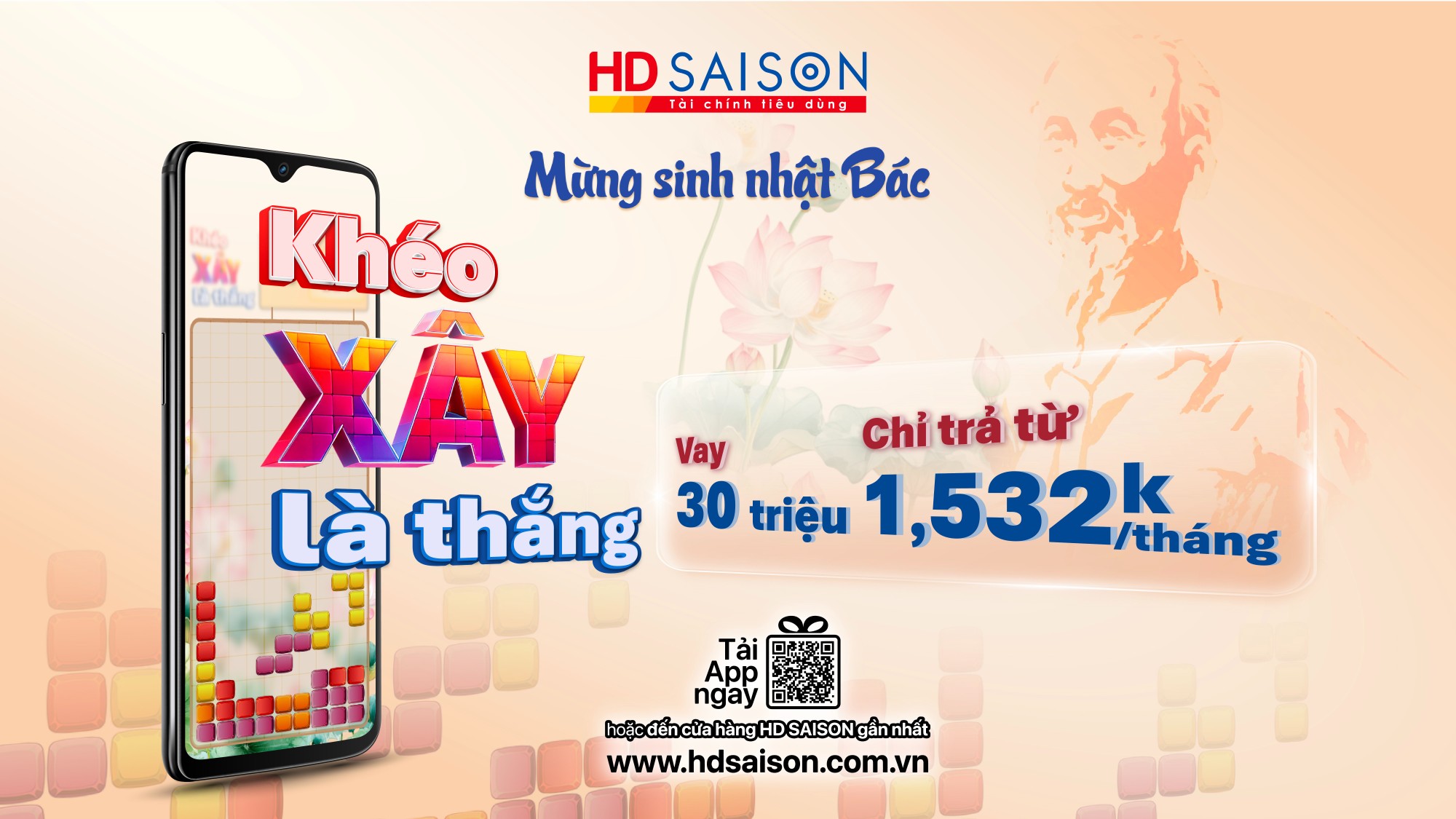 Tháng 5 này, hãy cùng HD SAISON hướng về ngày sinh của Bác 19/5 và hưởng ứng Ngày Tài chính Tiêu dùng 8/5 – lan tỏa mạnh mẽ tinh thần cần cù, tiết kiệm và sống có kế hoạch với gói vay ưu đãi chỉ 22.36%/năm!