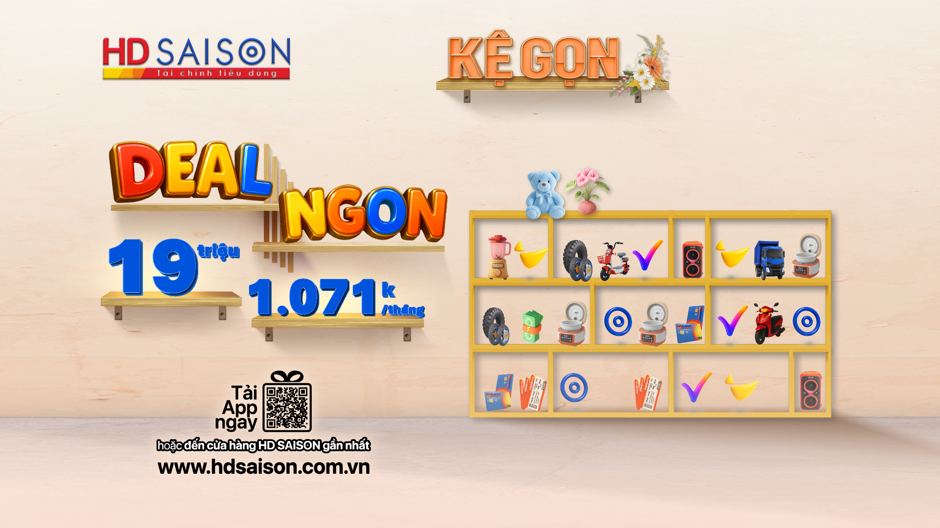 Giờ đây, những kế hoạch mua sắm, nâng cấp nhà cửa hay chuẩn bị cho chuyến du lịch cuối năm đều trở nên dễ dàng hơn với gói vay lãi suất chỉ 28,5%/năm. Đặc biệt, khi tham gia "Kệ gọn, deal ngon" trên App HD SAISON, bạn sẽ có cơ hội nhận lãi suất chỉ 17,5%/năm cho khoản vay đến 19 triệu đồng, trả góp nhẹ nhàng chỉ từ 1.071k/tháng.