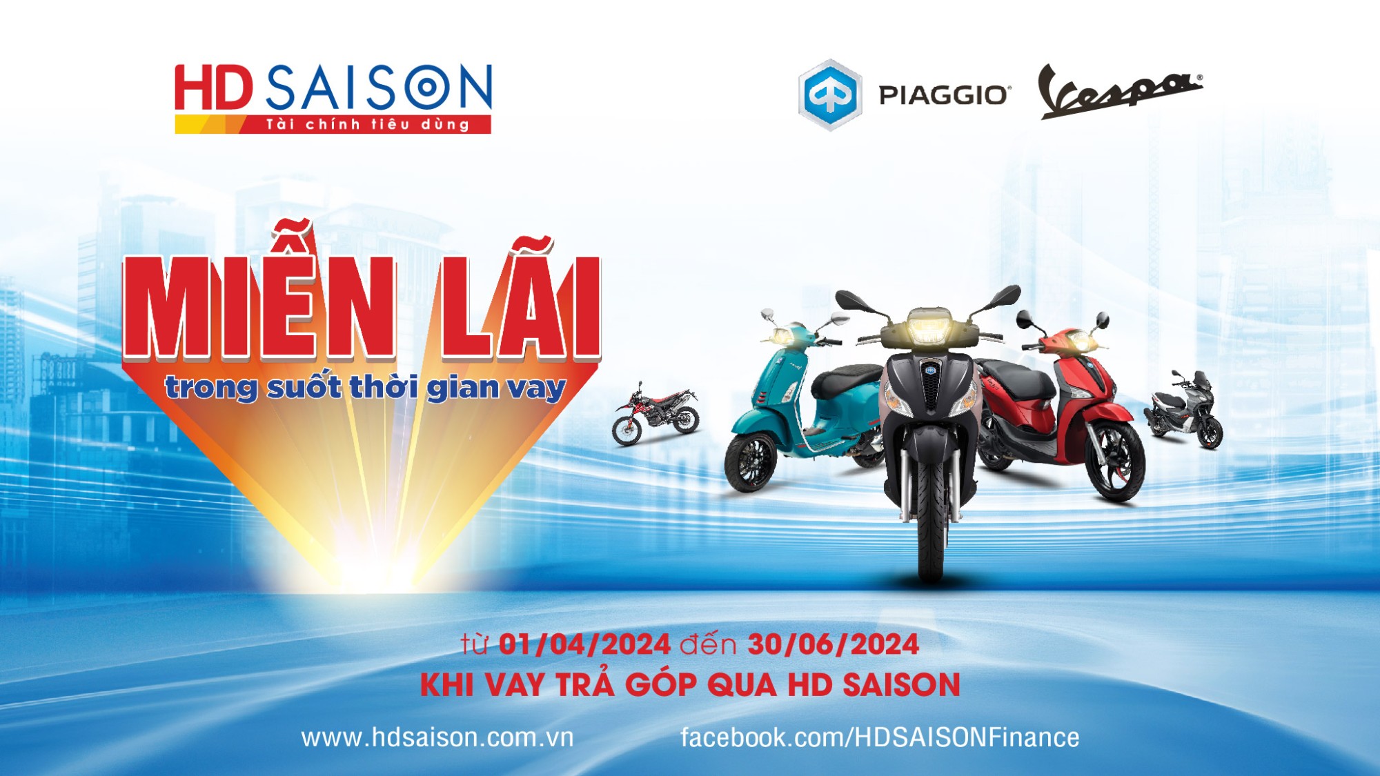 Piaggio VN và HD SAISON kết hợp mang đến gói vay không lãi suất giúp Quý khách hàng dễ dàng sở hữu các mẫu xe Piaggio, Vespa và Aprilia. Cụ thể như sau: